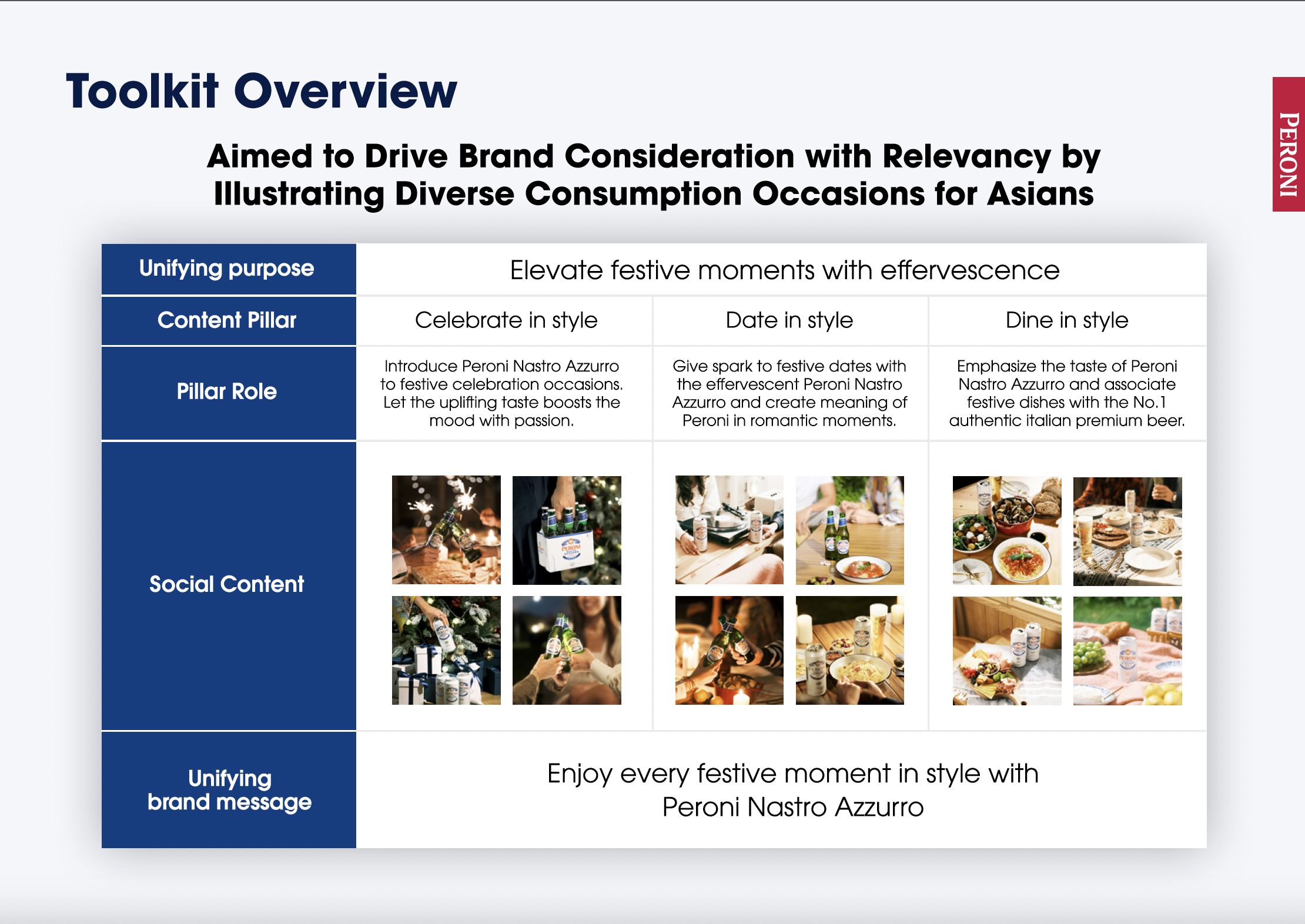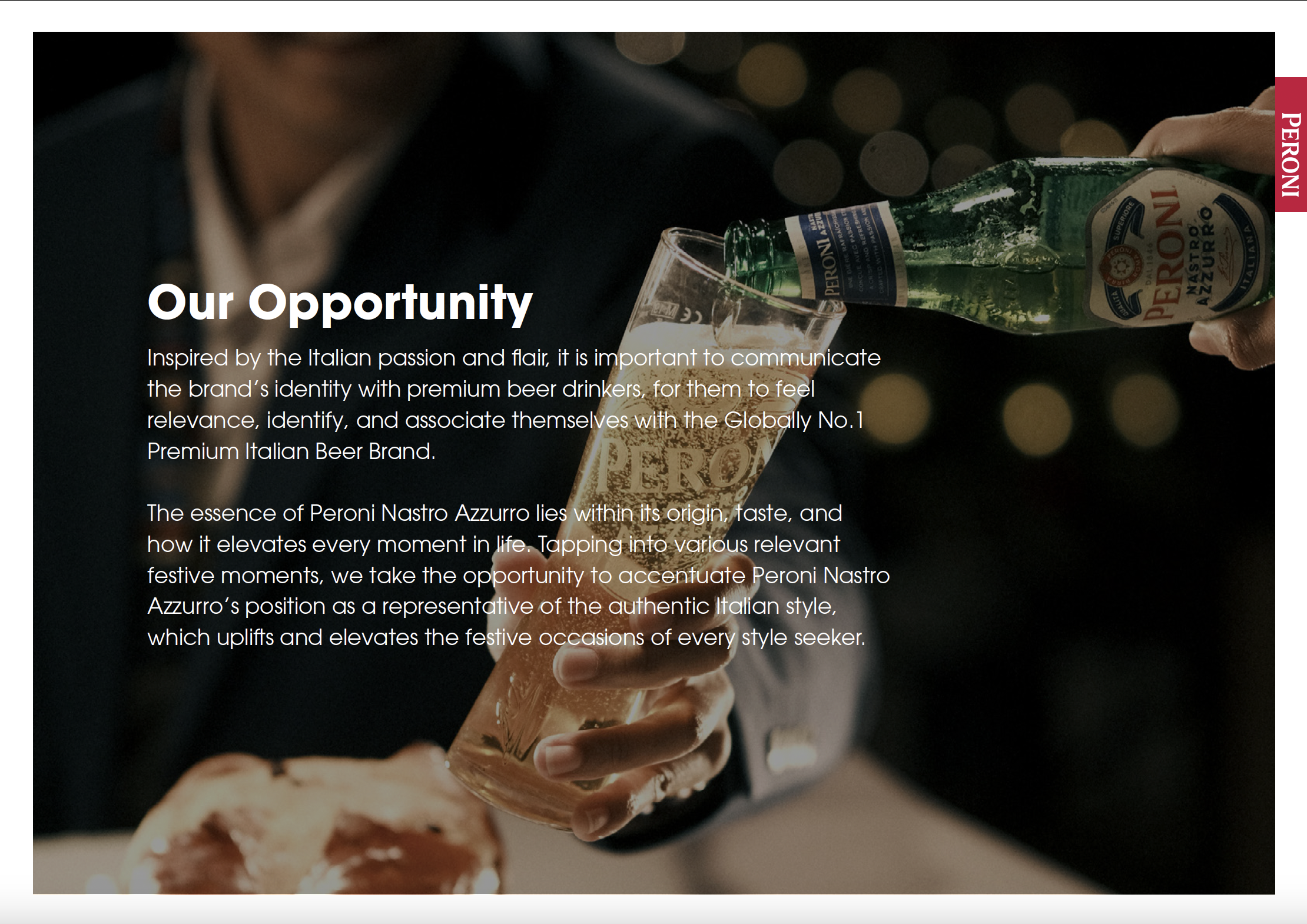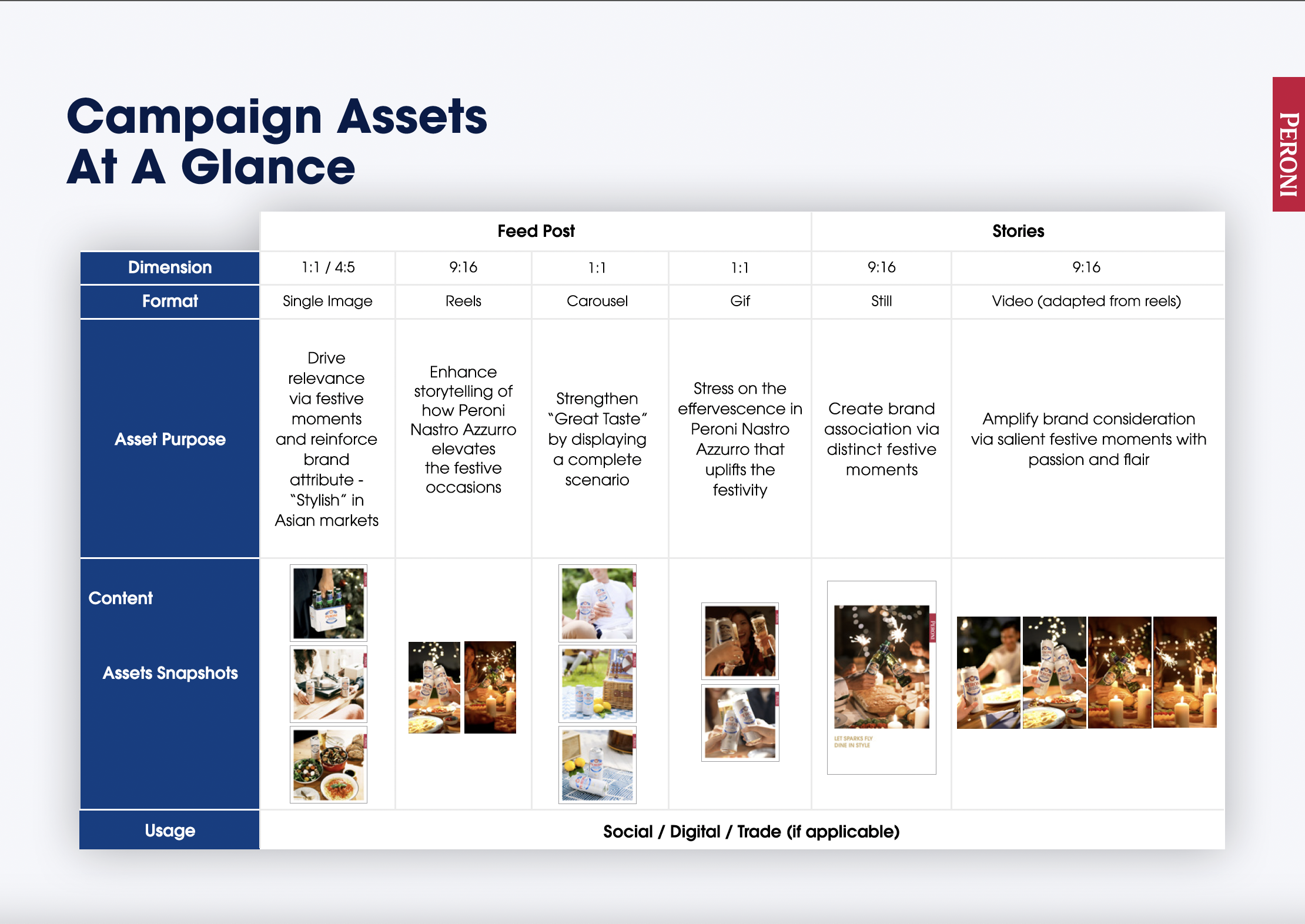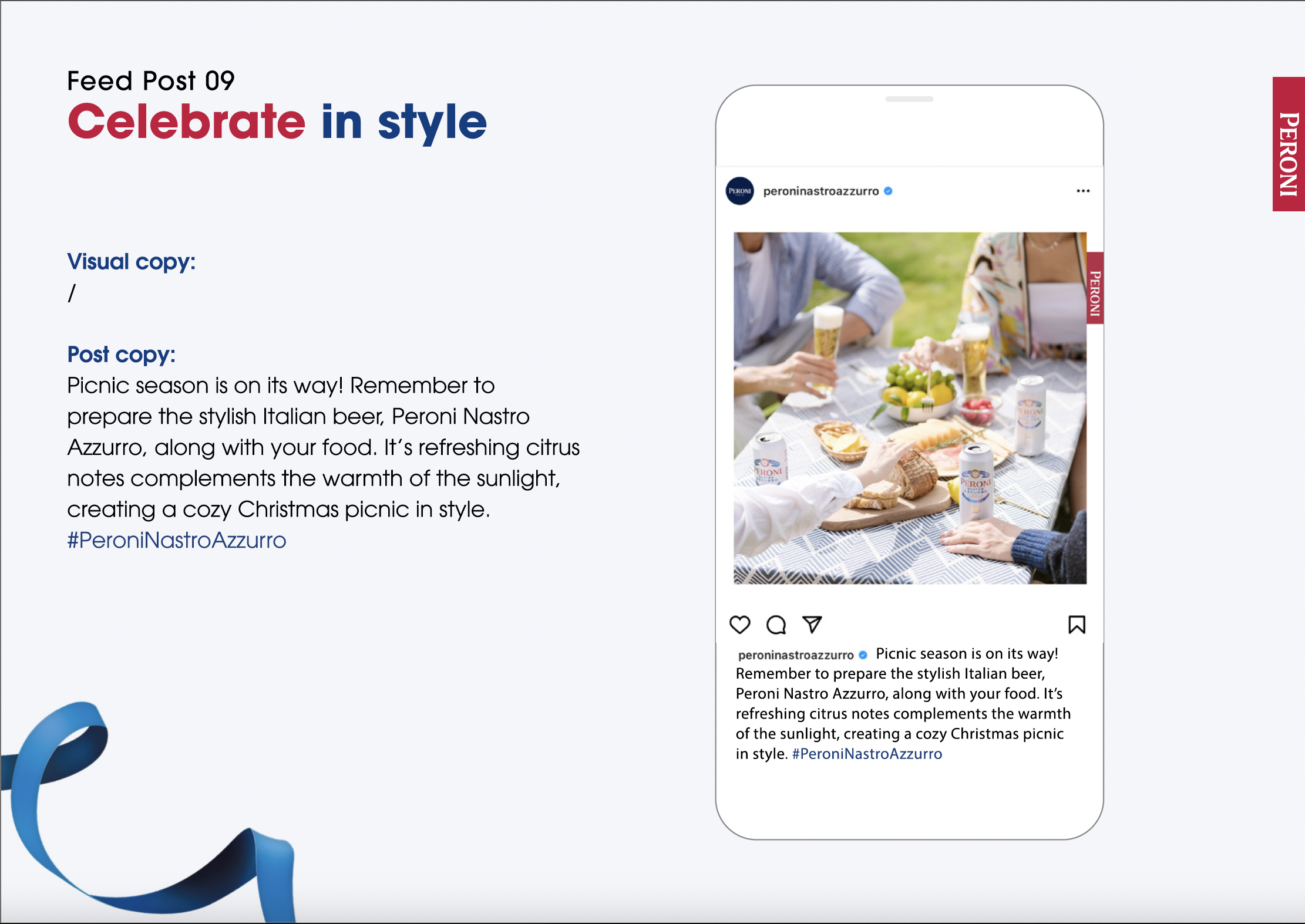 Peroni Nastro Azzurro is a premium Italian lager beer, launched in 1963. I create those social assets for all possible gathering moments and scenarios, inspiring potential consumers to enjoy the festive season with stylish Peroni Nastro Azzurro.
