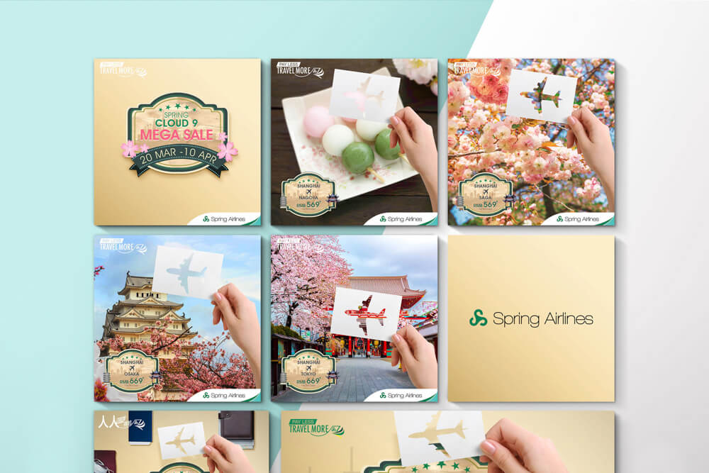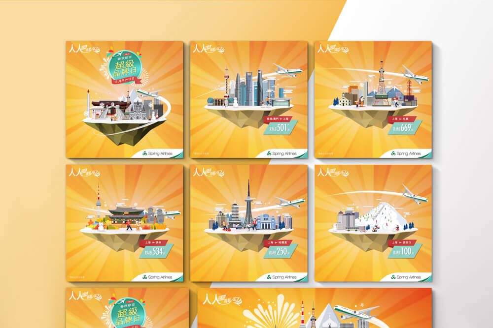 Spring Airlines Co., Ltd. is a low-cost carrier with its headquarters in the Homeyo Hotel in Changning District, Shanghai, China. The design objective is to promote their ticket and build the brand images.